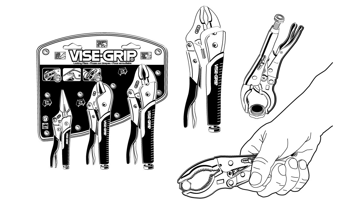 Developed vector illustration for Newell Brands—formerly American Tool Companies—spanning product groups like Quick-Grip, Strait-Line, Chesco, Vise-Grip, Marples, Unibit, Record, and Bernzomatic. Across a two-year engagement, we produced about 100 detailed illustrations used throughout packaging, catalogs, and sales materials.