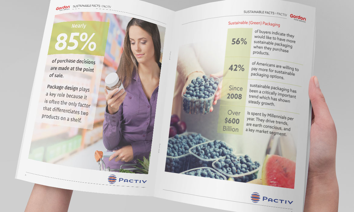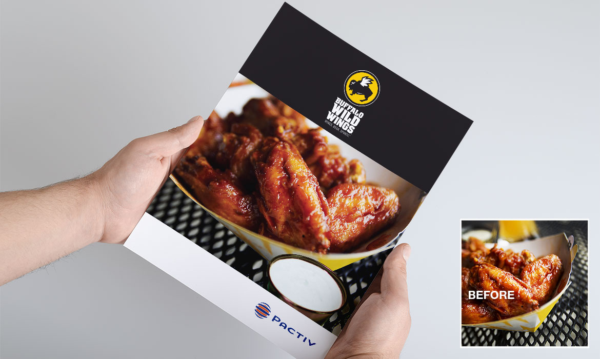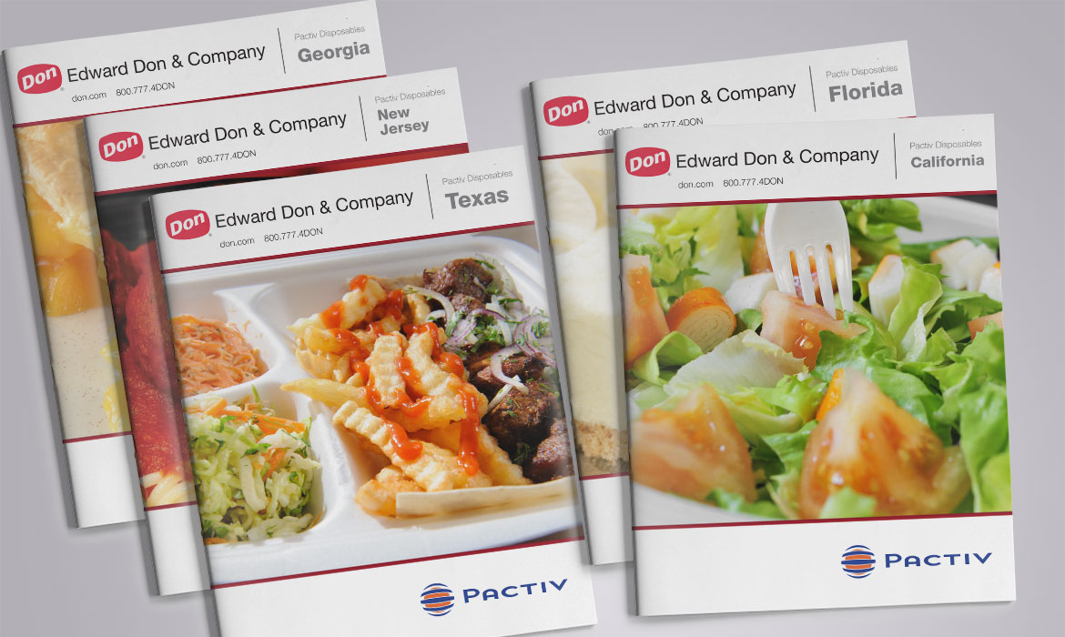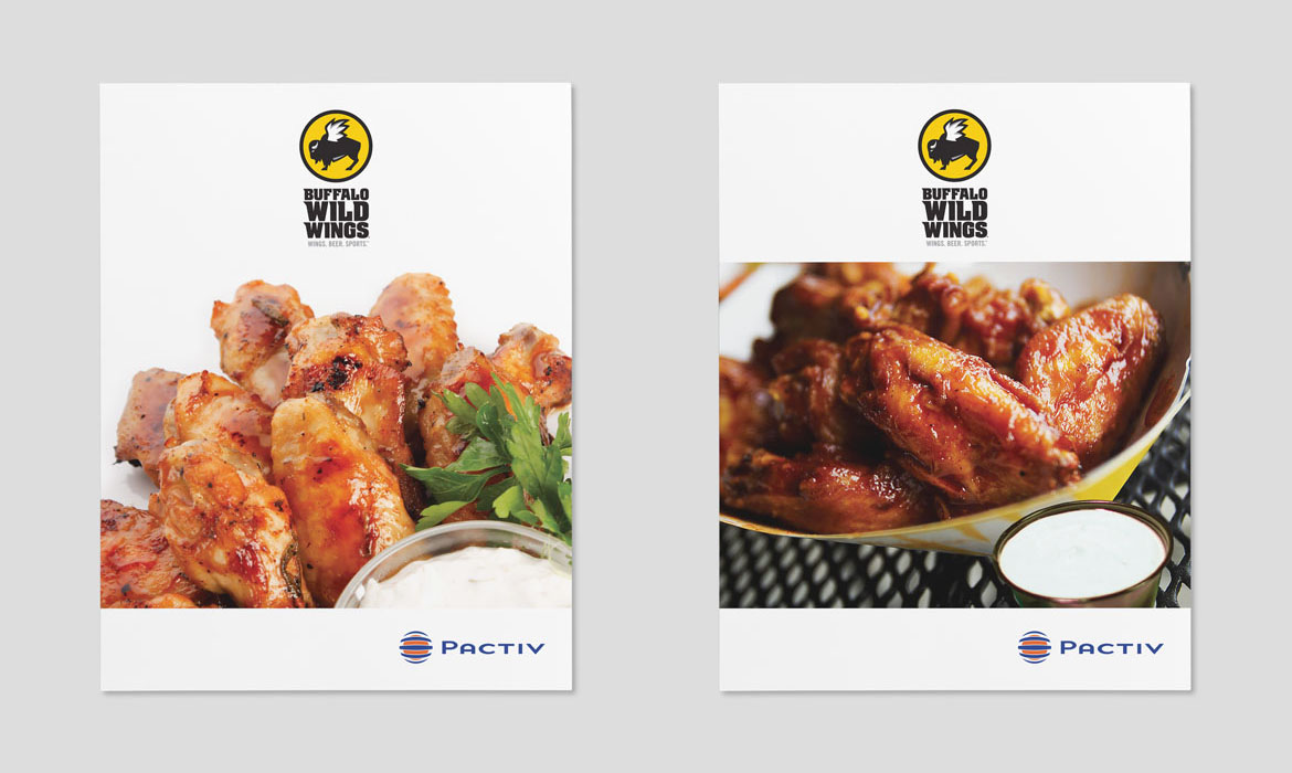 Marketing support across advertisements, collateral, and point-of-sale materials. Deliverables include graphic design, illustration, retouching, project management, and copy for Pactiv and partner brands including Sysco, Gordon Food Service, Buffalo Wild Wings, and Edward Don & Company.